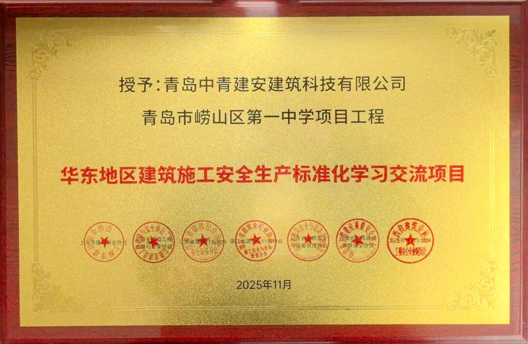 近日,华东地区建筑安全联席会传来消息。我公司青岛市崂山区第一中学项目凭借在建筑施工安全生产标准化领域的卓越表现与显著成效,历经严格评审,成功获评“华东六省一市建筑施工安全生产标准化学习交流项目”。 这一荣誉,是对崂山...